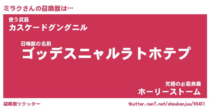 | ポケモン風あだ名 | 『ミラチュウ』『ミラクダネ』 |