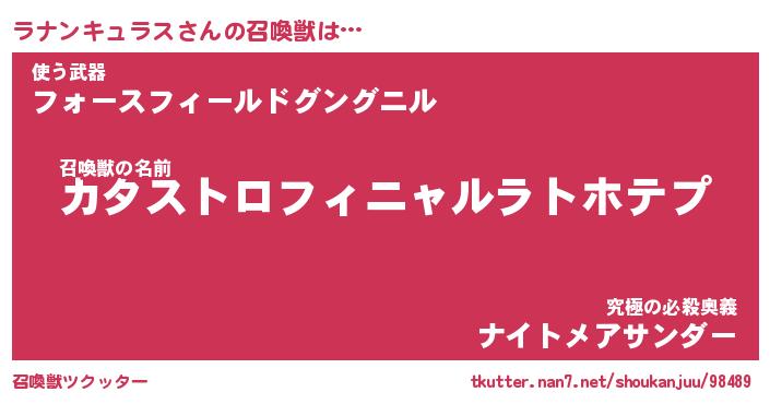 | 伝説のあだ名 | 『封印されしスナイパーラナンキュラス』 |