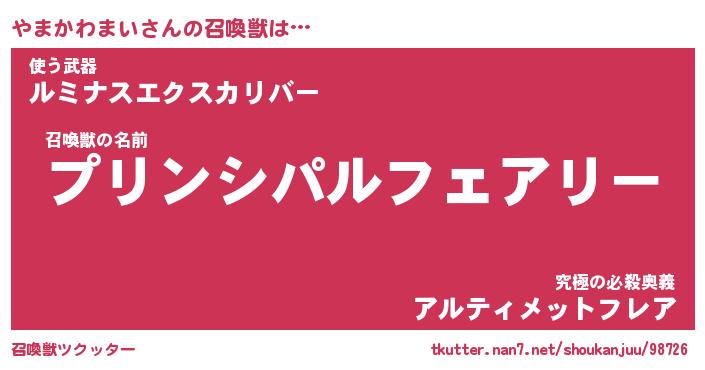 | 女子向けラノベタイトル風あだ名 | 『やまかわまい姫と円卓の騎士』 |