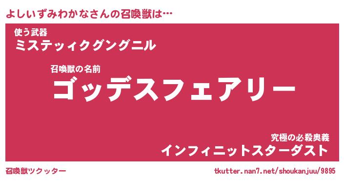 | 女子向けラノベタイトル風あだ名 | 『よしいずみわかな姫と円卓の騎士』 |