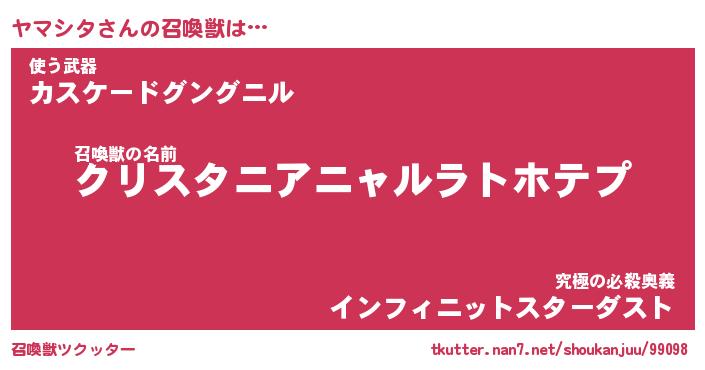 | 自動車の名前っぽいあだ名 | 『ヤマティマ』『ヤクア』『ヤント』 |
