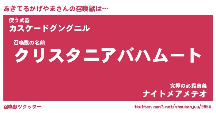 | ツイッター | あきてるかげやまさんのツイッターID『namakemono_star』 |