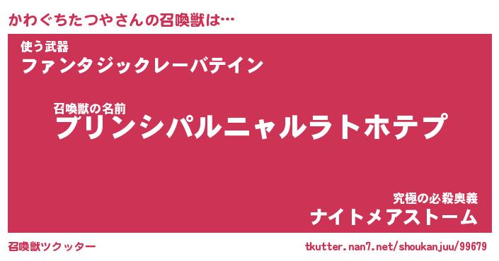 | 女子向けラノベタイトル風あだ名 | 『かわぐちたつや姫と円卓の騎士』 |