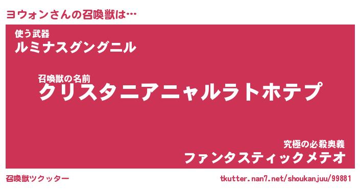 | ヒーロー風カッコイイあだ名 | 『スーパーヨウォン』『天弓騎士ヨウ』 |