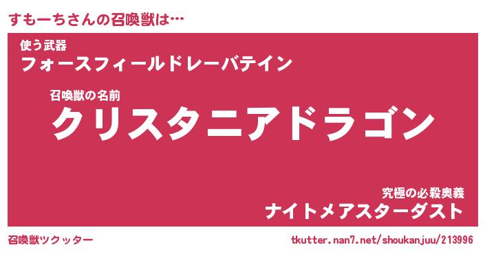 | 伝説のあだ名 | 『封印されし竜騎士すもーち』 |