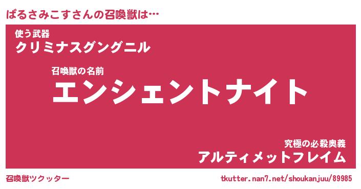 | 男性向けラノベタイトル風あだ名 | 『ばるさみこすの憂鬱』 |