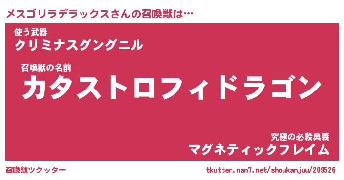 | 伝説のあだ名 | 『封印されし竜騎士メスゴリラデラックス』 |