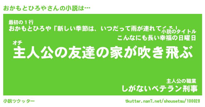 | 男性向けラノベタイトル風あだ名 | 『おかもとひろやの憂鬱』 |