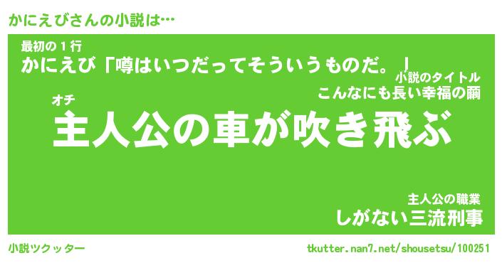 | 男性向けラノベタイトル風あだ名 | 『かにえびの憂鬱』 |