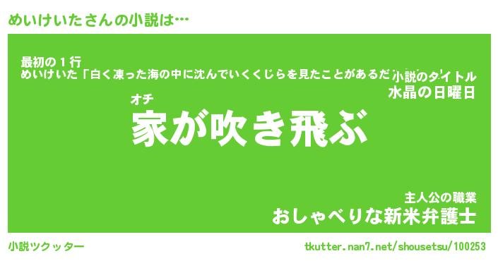| 男性向けラノベタイトル風あだ名 | 『めいけいたの憂鬱』 |