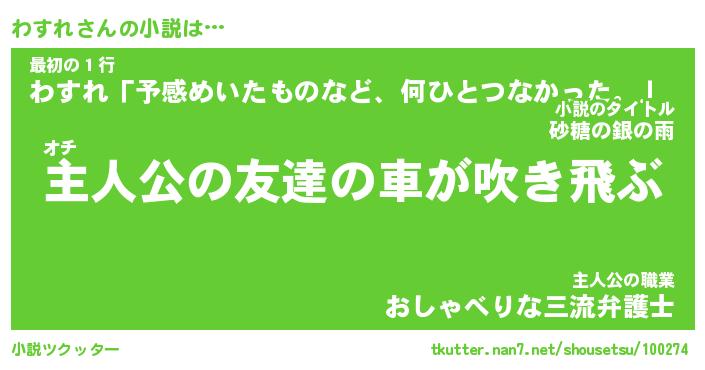 | 魚たちの銀の雨WW …「ケモノ」 | 10月27日 05:47 |