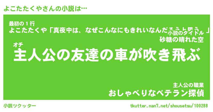 | ツイッター | よこたたくやさんのツイッターID『dendenmushi_man』 |