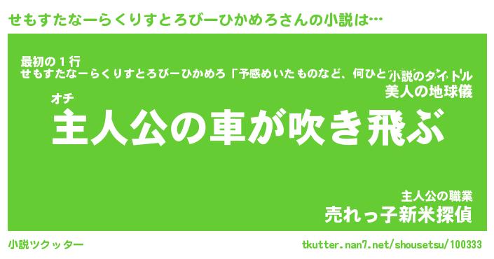 | 胡散臭い通販商品みたいなあだ名 | 『必ず成功する水晶球…その名も「せもすたなーらくりすとろびーひかめろ」』 |