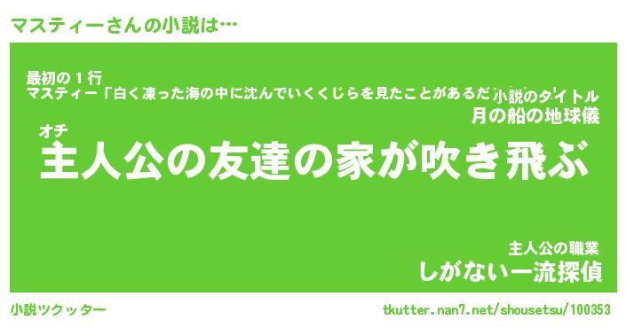 | 男性向けラノベタイトル風あだ名 | 『マスティーの憂鬱』 |