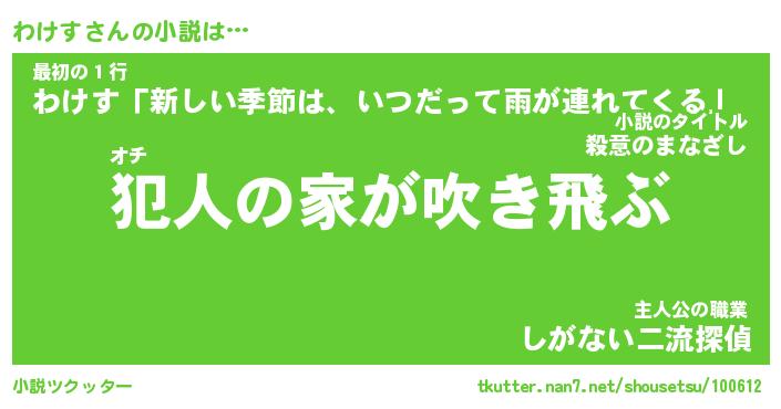 | 魚たちの銀の雨WW …「ケモノ」 | 10月27日 05:47 |