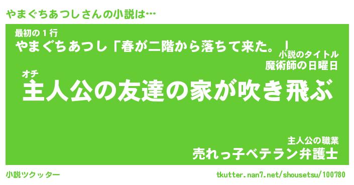 | 男性向けラノベタイトル風あだ名 | 『やまぐちあつしの憂鬱』 |