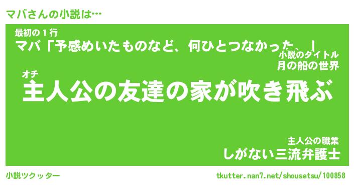 | 男性向けラノベタイトル風あだ名 | 『マバの憂鬱』 |