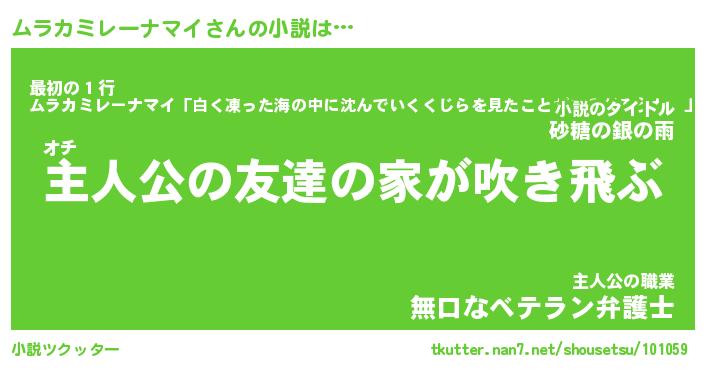 | 男性向けラノベタイトル風あだ名 | 『ムラカミレーナマイの憂鬱』 |