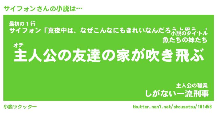 | 魚たちの銀の雨WW …「ケモノ」 | 10月27日 05:47 |