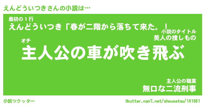 | 男性向けラノベタイトル風あだ名 | 『えんどういつきの憂鬱』 |
