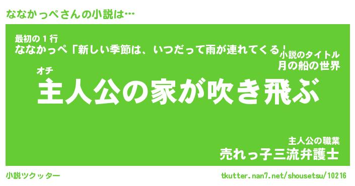 | 男性向けラノベタイトル風あだ名 | 『ななかっぺの憂鬱』 |