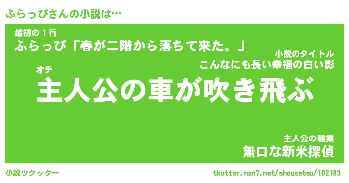 | 男性向けラノベタイトル風あだ名 | 『ふらっぴの憂鬱』 |