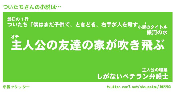| 魚たちの銀の雨WW …「ケモノ」 | 10月27日 05:47 |