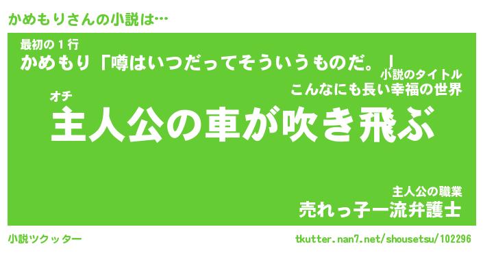 | 男性向けラノベタイトル風あだ名 | 『かめもりの憂鬱』 |