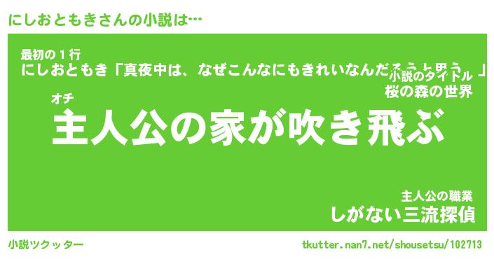 | 男性向けラノベタイトル風あだ名 | 『にしおともきの憂鬱』 |