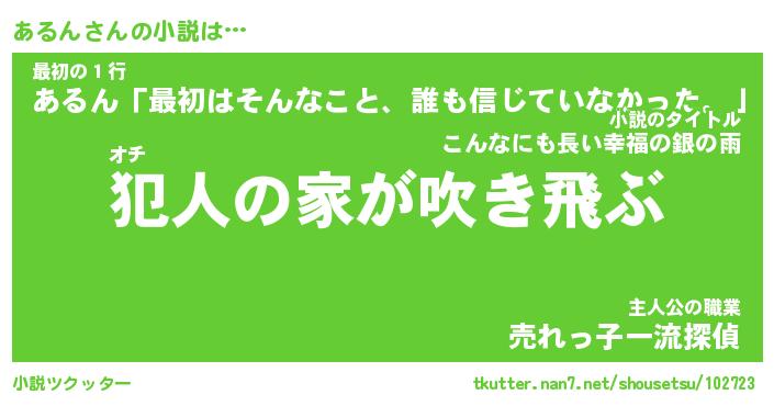 | 魚たちの銀の雨WW …「ケモノ」 | 10月27日 05:47 |