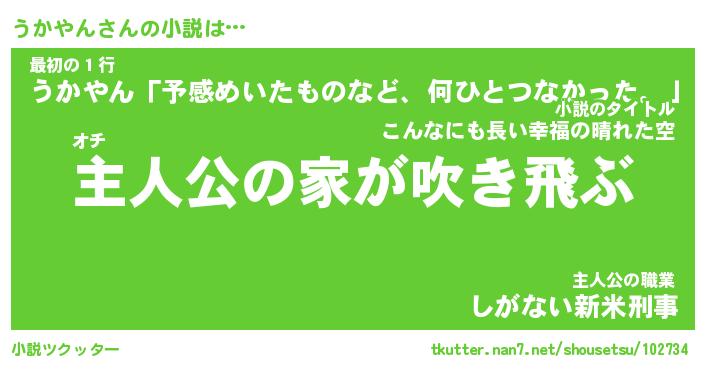 | 男性向けラノベタイトル風あだ名 | 『うかやんの憂鬱』 |