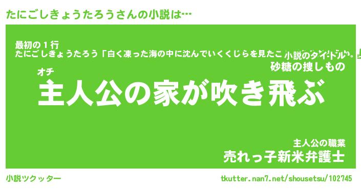 | 男性向けラノベタイトル風あだ名 | 『たにごしきょうたろうの憂鬱』 |