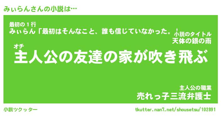 | 魚たちの銀の雨WW …「ケモノ」 | 10月27日 05:47 |
