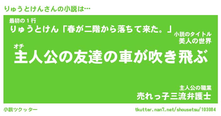 | 男性向けラノベタイトル風あだ名 | 『リュウトケンアートオンライン』 |