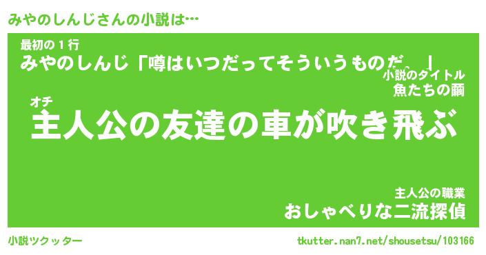 | ツイッター | みやのしんじさんのツイッターID『katatsumuri_star』 |