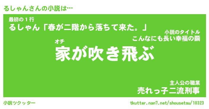 | 男性向けラノベタイトル風あだ名 | 『るしゃんの憂鬱』 |