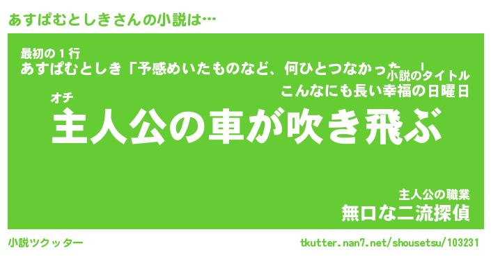 | 男性向けラノベタイトル風あだ名 | 『あすぱむとしきの憂鬱』 |