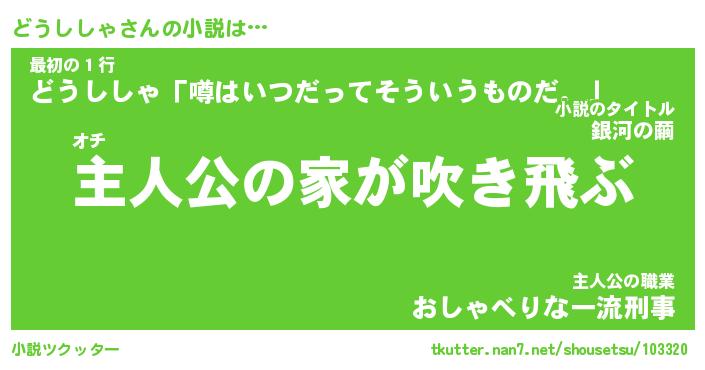 | 魚たちの銀の雨WW …「ケモノ」 | 10月27日 05:47 |