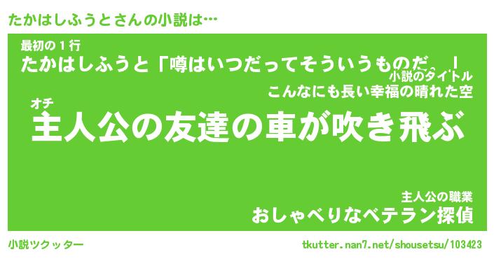 | ツイッター | たかはしふうとさんのツイッターID『dendenmushi_idle』 |