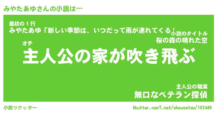 | 男性向けラノベタイトル風あだ名 | 『みやたあゆの憂鬱』 |