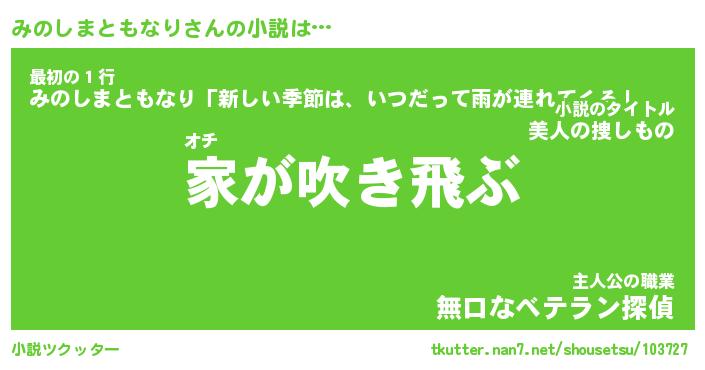 | 男性向けラノベタイトル風あだ名 | 『みのしまともなりの憂鬱』 |