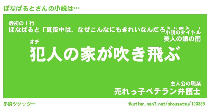| 魚たちの銀の雨WW …「ケモノ」 | 10月27日 05:47 |