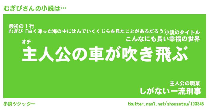 | 男性向けラノベタイトル風あだ名 | 『むぎぴの憂鬱』 |