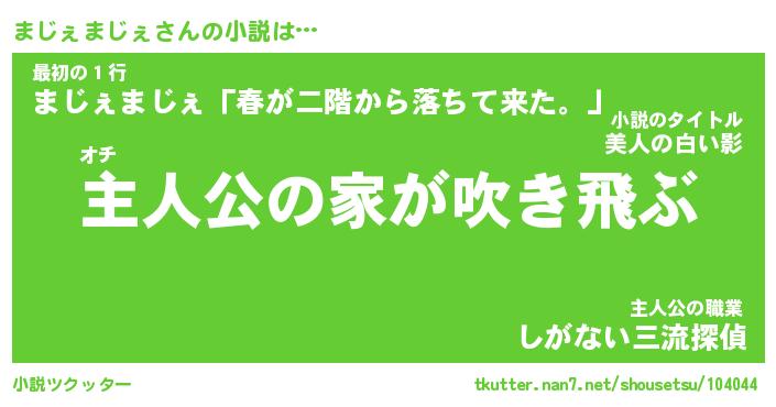 | 男性向けラノベタイトル風あだ名 | 『まじぇまじぇの憂鬱』 |