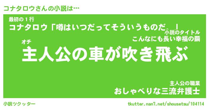 | 女子向けラノベタイトル風あだ名 | 『(仮)コナタロウのやんごとなき事情』 |