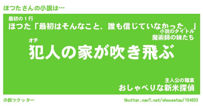 | 男性向けラノベタイトル風あだ名 | 『ホツタアートオンライン』 |