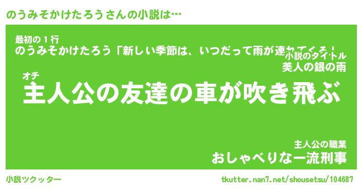 | 魚たちの銀の雨WW …「ケモノ」 | 10月27日 05:47 |