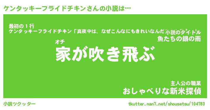 | 男性向けラノベタイトル風あだ名 | 『ケンタッキーフライドチキンの憂鬱』 |