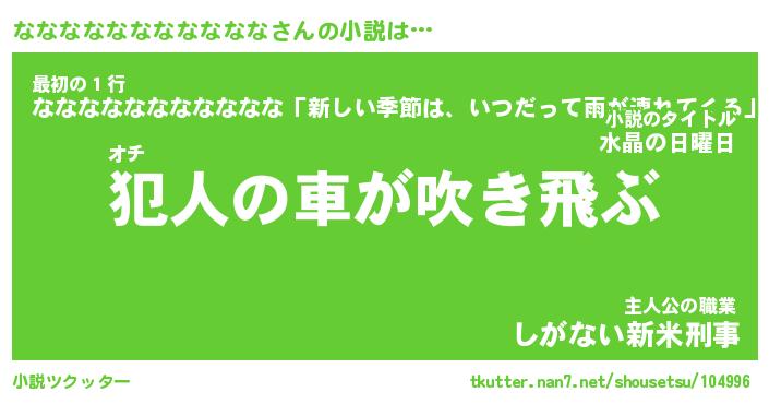 | 胡散臭い通販商品みたいなあだ名 | 『億万長者になれるブレスレット…その名も「ななななななななななな」』 |
