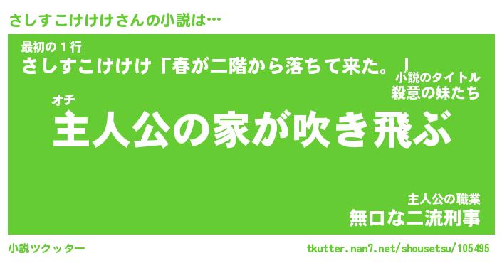 | 男性向けラノベタイトル風あだ名 | 『さしすこけけけの憂鬱』 |